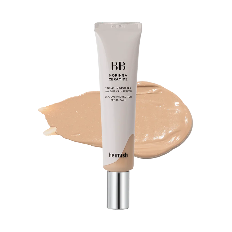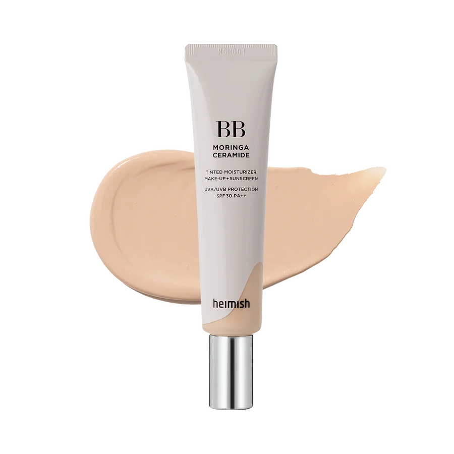 Luce una piel radiante, uniforme y protegida con la BB Cream Moringa Ceramide de Heimish. Esta fórmula renovada combina maquillaje y skincare en una textura ligera que se funde perfectamente con la piel, ofreciendo cobertura natural, hidratación duradera y protección frente a los rayos UV.